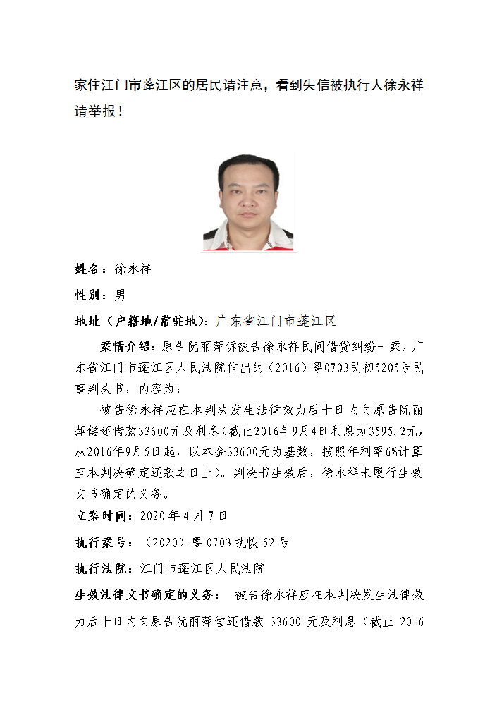【失信曝光】蓬江法院今日头条失信被执行人名单