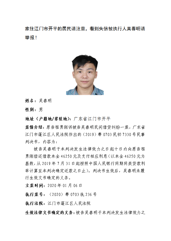 【失信曝光】蓬江今日头条失信被执行人名单