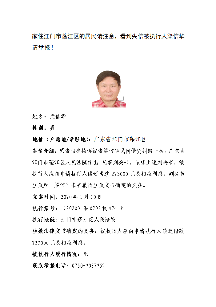 上一篇: 上一篇: 【失信曝光】蓬江法院今日头条失信被执行人名单